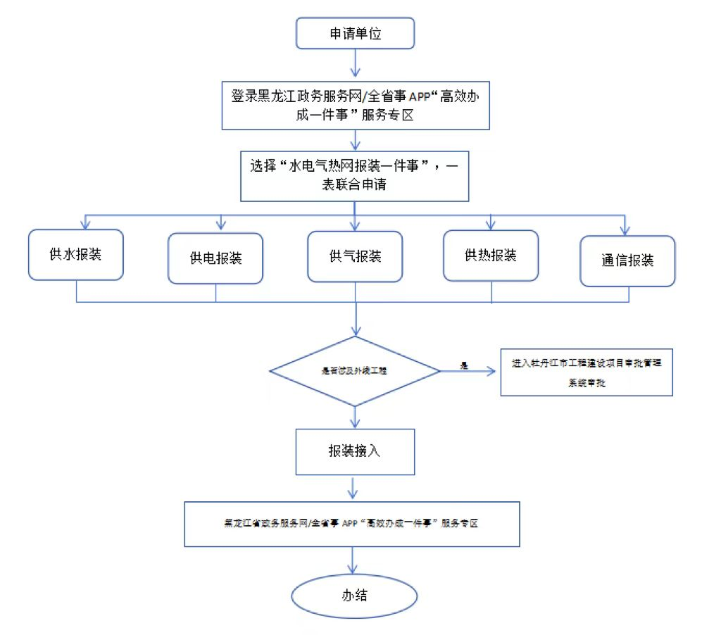 2、登錄“牡丹江市工程建設項目審批管理平臺”--選擇“水電熱氣訊聯合報裝服務流程”